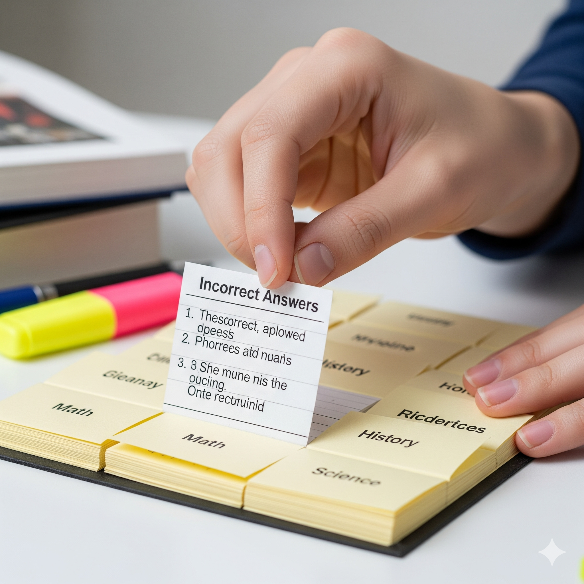 📸 이미지 #2: 오답 노트를 꼼꼼히 정리하는 학생의 손 클로즈업 이미지