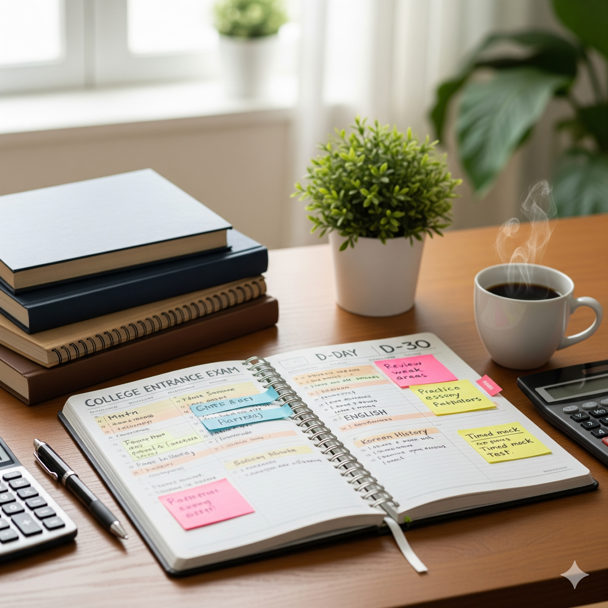 📸 이미지 #4: 플래너에 수능 D-day까지의 학습 계획을 세우는 이미지