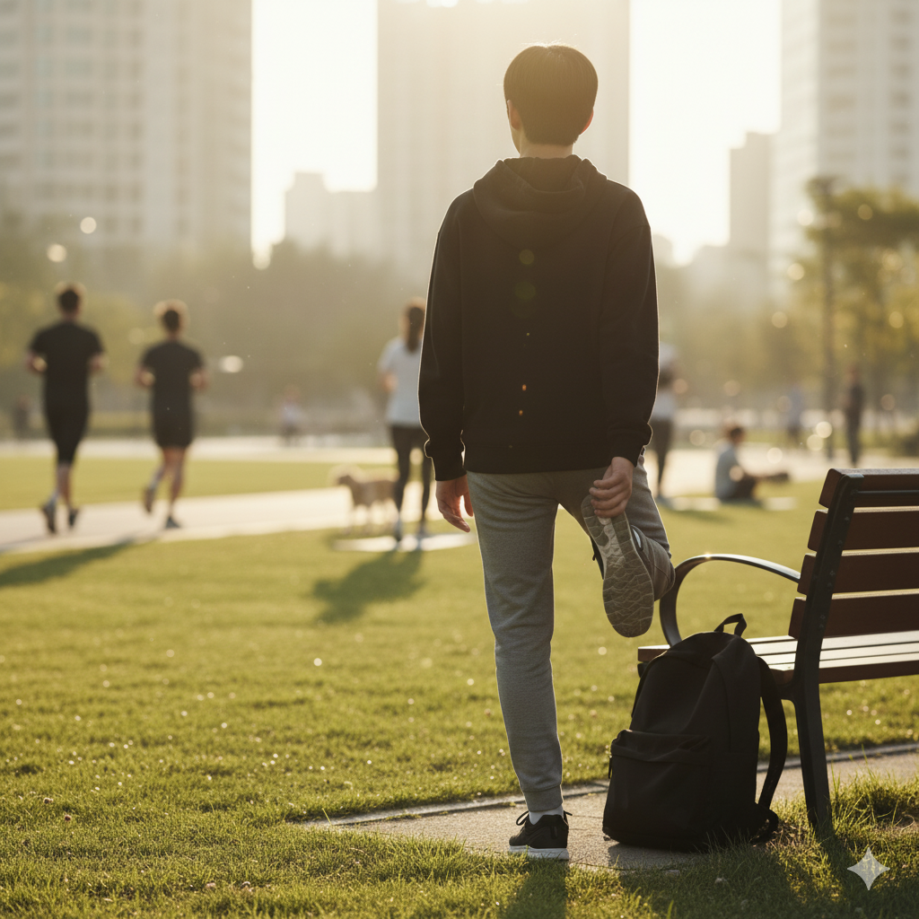 📸 이미지 #4: 공원에서 가볍게 조깅을 하거나 스트레칭하는 수험생의 뒷모습