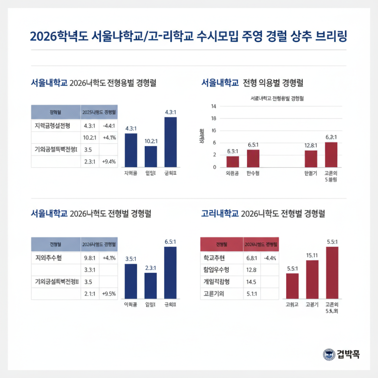 2026학년도 수시모집 서울대, 고려대 주요 경쟁률 분석 브리핑 문서