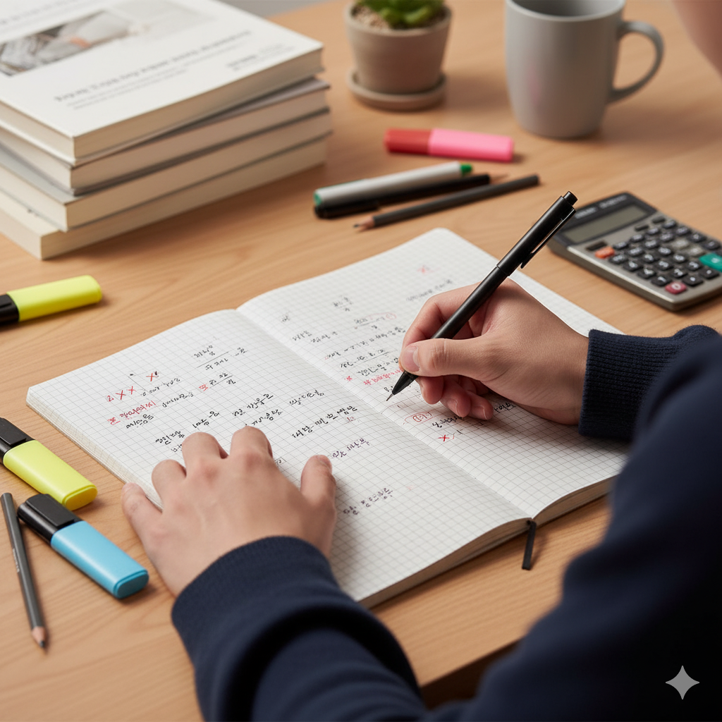 📸 이미지 #3: 수학 오답노트를 꼼꼼히 정리하는 손 이미지