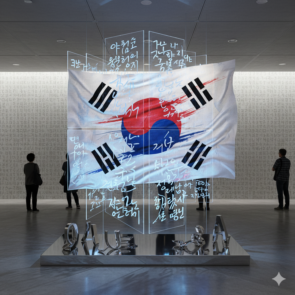 📸 이미지 #6: 한글을 모티프로 한 현대적인 예술 작품 또는 태극기와 함께 있는 한글 이미지